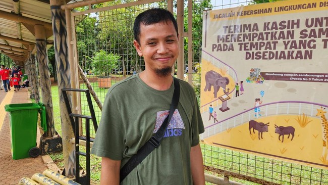 "Datang bareng keluarga, ada anak sama istri. Anak 2 ya. Ke sini biar anak-anak ini bisa lihat binatang langsung ya, belajarlah gitu," kata Rahmat.