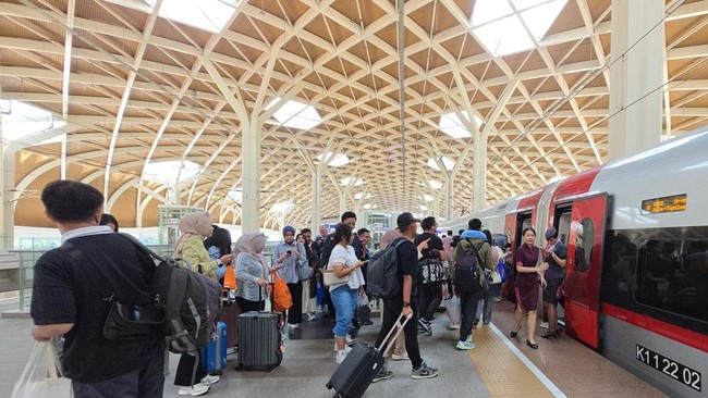 Kereta cepat Whoosh mengalami gangguan. Akibatnya, penumpang di Stasiun Halim menumpuk.