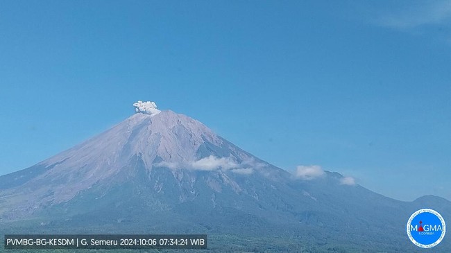 Gunung Semeru, Jawa Timur, tercatat beberapa kali erupsi hari ini. Letusan yang terjadi setinggi 800 meter hingga 1 kilometer (km) di atas puncak.