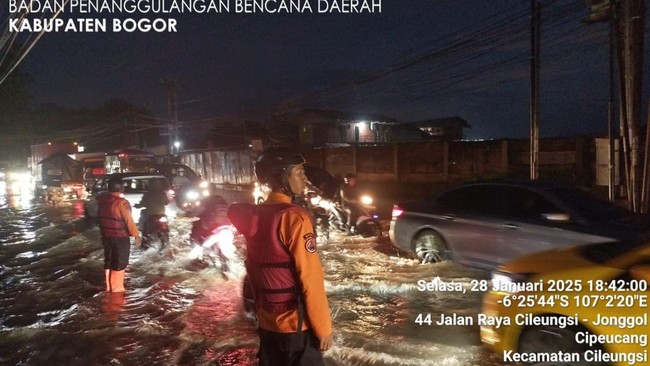 "Banjir dengan ketinggian kuranglebih 30-45 cm, sehingga merendam perumahan dan Jalan Raya Transyogi Jonggol-Cileungsi," kata Kabid Kedaruratan dan Logistik BPBD Kabupaten Bogor M Adam Hamdani, Selasa (28/1/2025).