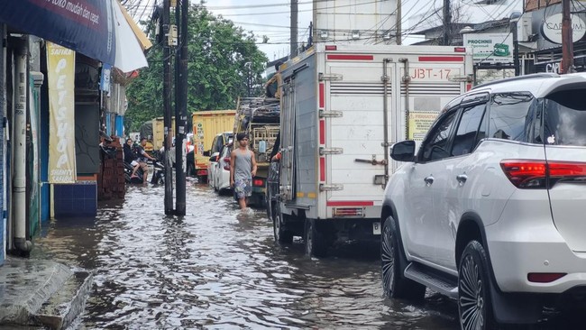 Pantauan detikcom di lokasi, Kamis (30/1/2025) pukul 10.45 WIB, ketinggian air masih sekitar 10-30 sentimeter. Antrean kendaraan pun mengular sekitar 100 meter.