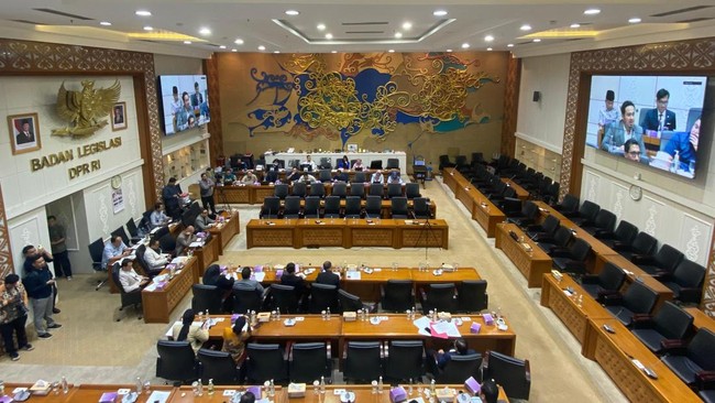 Rapat digelar di Gedung Nusantara I DPR RI, Senayan, Jakarta Pusat, Kamis (30/1/2025). Rapat dipimpin oleh Wakil Ketua Baleg DPR RI Sturman Panjaitan.