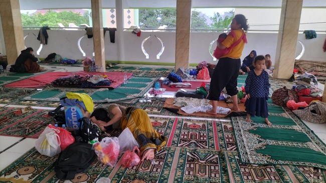Pantauan detikcom Jumat (31/1/2025) di lokasi pengungsian, terlihat sebagian pengungsi tengah beristirahat. Para pengungsi beristirahat beralaskan karpet masjid. Mereka merebahkan tubuhnya.