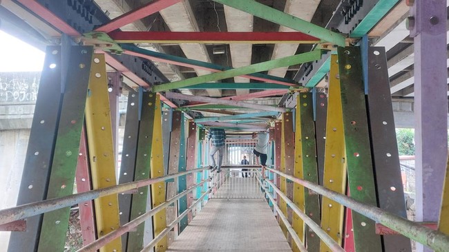 Sebab, mereka yang lewat harus menjaga betul keseimbangannya saat memanjat. Lebih lagi, di bawah jembatan langsung merupakan bantaran Sungai Ciliwung.