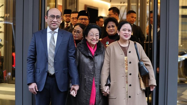 Megawati, Puan, dan Tatam berangkat dari hotel di kawasan Roma, Italia, Senin (3/2/2025) pagi waktu setempat. Megawati, Puan, dan Tatam ditemani sejumlah kader dan sahabat partai, seperti Ketua DPP PDIP Bintang Puspayoga dan Connie Bakri.