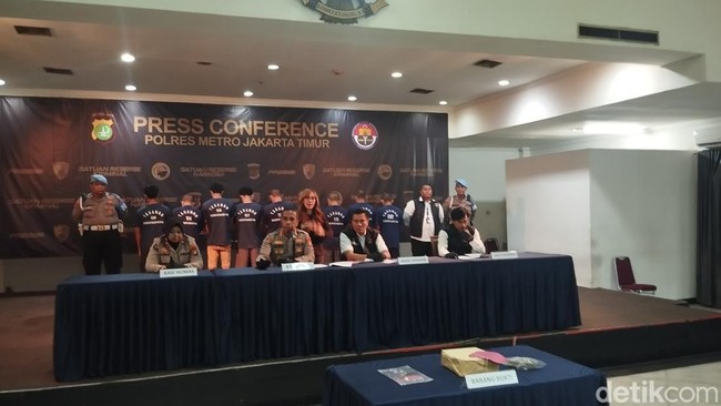 Kapolres Metro Jakarta Timur Kombes Nicolas Ary Lilipaly mengatakan, dari 10 tersangka itu, 9 orang merupakan warga sipil dan satu orang oknum polisi Bripka O dari kesatuan Brimob Mabes Polri.