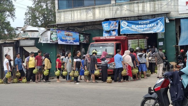 Pantauan detikcom, antrean pembeli terjadi di pangkalan gas Jl Merdeka, Bogor Tengah, Kota Bogor. Mereka tampak berjejer sambil memegang tabung gas ukuran 3 kilogram.