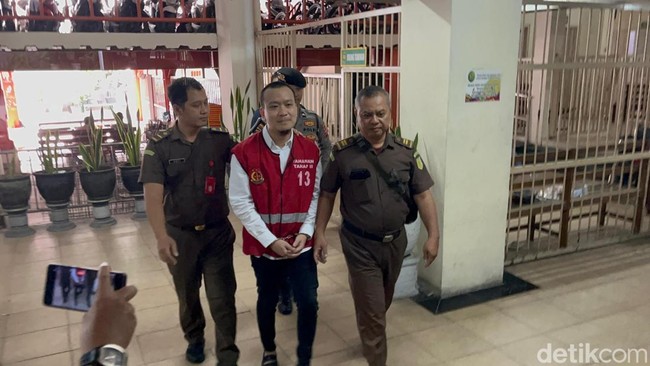 Pantauan detikJatim, Ivan terlihat mengenakan kemeja putih dan rompi tahanan warna merah beserta borgol di kedua pergelangan tangannya. Ia berjalan santai ketika digelandang petugas Kejaksaan dari Ruang Tahanan menuju Ruang Sidang Cakra PN Surabaya.