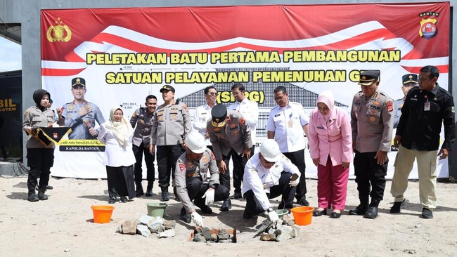 Polda Banten melakukan groundbreaking atau peletakan batu pertama pembangunan dapur pelayanan pemenuhan gizi. Hal itu dilakukan untuk mendukung program pemerintah Prabowo-Gibran.