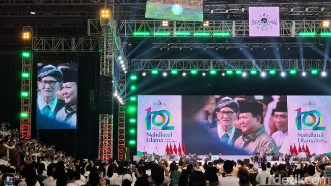 Presiden Prabowo Subianto dan Wakil Presiden Gibran Rakabuming Raka menghadiri puncak Harlah ke-102 Nahdlatul Ulama di Istora Senayan, Jakarta. Sejumlah menteri juga turut hadir dalam acara tersebut.
