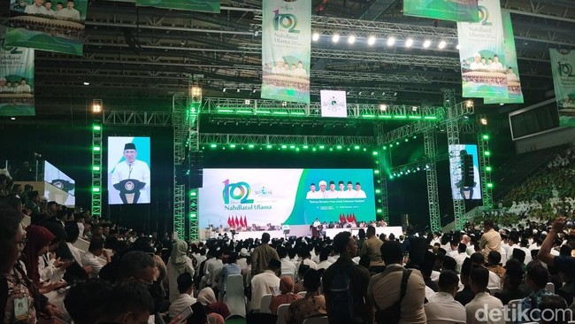Mulanya Gus Yahya menyampaikan selamat hari lahir ke-102 Nahdlatul Ulama. Ucapan itu disambut meriah para peserta yang hadir di Istora Senayan, Jakarta Pusat.