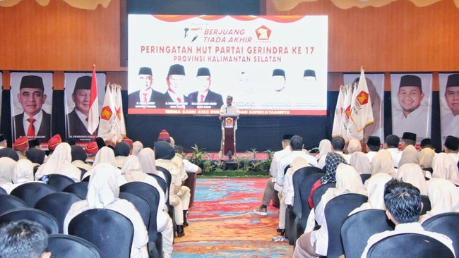 Sekjen Partai Gerindra Ahmad Muzani menghadiri perayaan HUT ke-17 Partai Gerindra oleh DPD Gerindra Kalimantan Selatan. Muzani menyampaikan beberapa pesan kepada seluruh kader Gerindra.