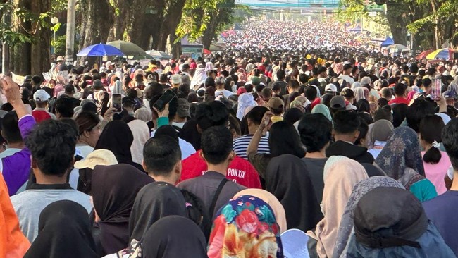 "Kalau bisa, acara seperti ini bisa tiap bulan. Benar kan, ibu-ibu bapak semua," tanya Kapolda kepada lautan massa, yang disambut teriakan, 'betul'.