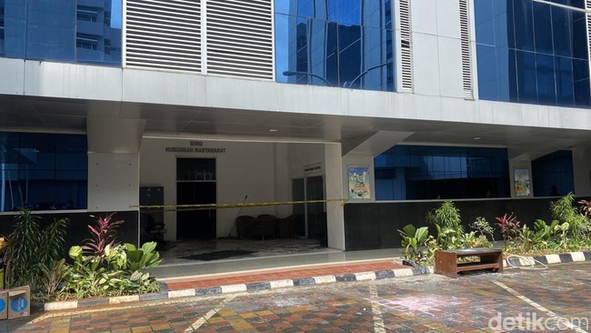 Tampak ruangan yang terbakar itu adalah ruang Biro Hubungan Masyarakat dan ruang Media Center. Kedua ruangan itu pun diberi garis polisi.