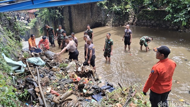 Pantauan detikcom, sejumlah anggota TNI, Polri, BPBD, DLH Kota Bogor hingga relawan tampak membersihkan sampah yang berada di Sungai Cidepit. Pembersihan sungai dilakukan tak lama setelah Presiden Prabowo mengunjungi gedung Satuan Pemenuhan Pelayanan (SPPG) Tanah Sareal, Kota Bogor.