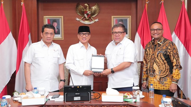 Menteri Desa dan Pembangunan Daerah Tertinggal (Mendes PDT) Yandri Susanto menerima audiensi Wakil Menteri Perumahan dan Kawasan Permukiman Fahri Hamzah, hari ini. Pertemuan tersebut membahas peluang kerja sama membangun perumahan dan kawasan permukiman di desa.