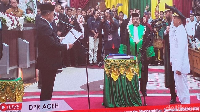Mualem-Dek Fadh menjadi pasangan kepala daerah pertama hasil Pilkada 2024 yang dilantik. Pelantikan pasangan berlatar belakang Gerakan Aceh Merdeka (GAM) ini juga dihadiri masyarakat yang mendapatkan undangan.