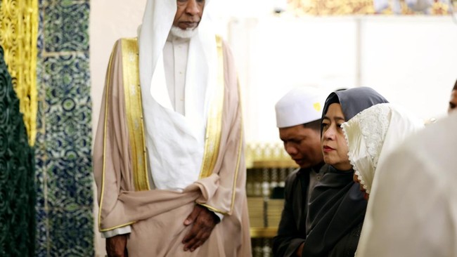 Megawati memulai rangkaian ziarah makam Nabi Muhammad SAW yang terletak di kawasan Masjid Nabawi, Madinah, Rabu (12/2/2025). Megawati didampingi keluarganya yakni dua anaknya, Ketua DPR RI Puan Maharani dan Mohamad Rizki Pratama, cucunya Diah Pikatan Orrisa atau Pinka, dan beberapa kerabatnya. Dubes RI untuk Tunisia Zuhairi Misrawi dan Anggota DPR RI Fraksi PDIP Abidin Fikri juga ikut dalam rombongan.
