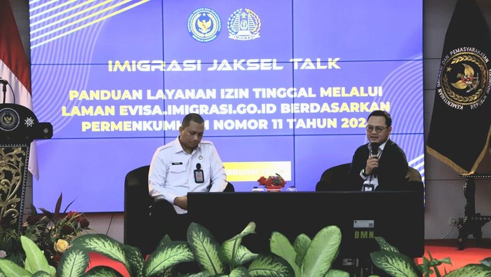 Kantor Imigrasi Kelas I Khusus Non TPI Jakarta Selatan menggelar sosialisasi yang dilaksanakan secara hybrid dengan tema terkait panduan layanan izin tinggal melalui laman evisa.imigrasi.go.id. Imigrasi Jakarta berharap layanan e-visa ini semakin memperkuat sistem keimigrasian.