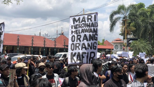 Pantauan detikJogja, massa aksi bertajuk Aksi Bersama Rakyat ini mulai bergerak sekitar pukul 12.00 WIB, Kamis (20/2/2025). Mereka membentangkan spanduk besar di depan barisan bertulisan 'Rakyat Bersatu! Bangun Demokrasi Kerakyatan'.