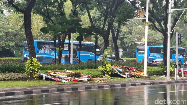 Dia mengatakan rombongan itu berjalan dari arah Gambir menuju lokasi demo di Patung Kuda. Untungnya, tak semua karangan bunga dirusak.