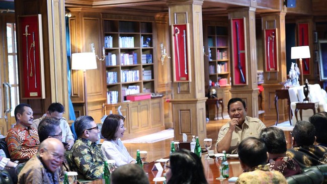 Presiden Prabowo Subianto berdiskusi bersama puluhan pemimpin redaksi (pemred) media massa dan tokoh senior jurnalisme di kediamannya di Padepokan Garuda Yaksa, Hambalang, Bogor, Jawa Barat. Kurang lebih enam jam lamanya Prabowo dan para pemimpin media massa saling bertukar pikiran membahas isu terkini yang sedang berkembang.