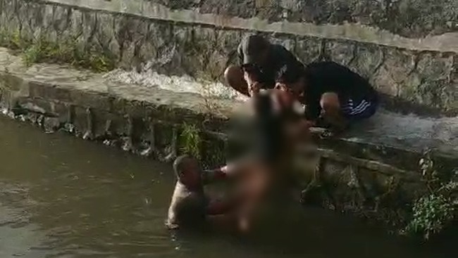 Menyadari situasi kritis, tanpa ragu dia langsung melompat ke sungai untuk melakukan penyelamatan. Bahunya bahkan sempat terbentur batu di sungai itu.