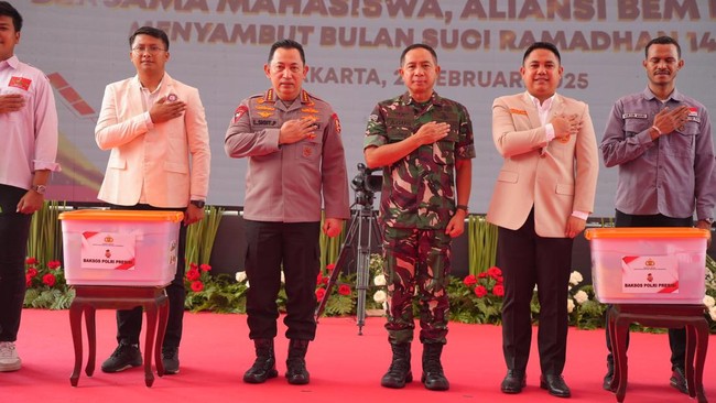 Kapolri Jenderal Listyo Sigit Prabowo menghadiri acara bakti sosial Presisi untuk menyambut bulan Ramadan 1446 Hijriah. Acara dihadiri oleh mahasiswa, BEM hingga organisasi kemasyarakatan.