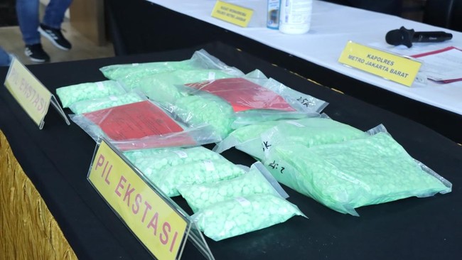 "Dari pengungkapan ini, kami menyita 14 ribu butir ekstasi dengan rincian 13 ribu butir berlogo Rolex dan 1.000 butir berlogo Kenzo," ujar Kapolres Metro Jakarta Barat Kombes Twedi Aditya Bennyahdi, Kamis (27/2/2025).
