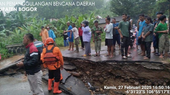 "Betul, jembatan ambruk di jalur Citereup-Sukamakmur. Anggota sedang penanganan di lokasi, tim PUPR juga sudah dihubungi, secepatnya ke lokasi juga," kata Kabid Kedaruratan dan Logistik BPBD Kabupaten Bogor Mohamad Adam Hamdani, Kamis (27/2/2025).