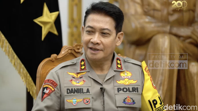 "Jadi ini memang secara harfiah Dharma itu artinya adalah menegakkan kebenaran. Atau mengabdi juga bisa. Namun demikian Dharma itu secara akronim merupakan kepanjangan dari yang pertama D itu disiplin berintegritas, yang kedua H itu humanis, yang ketiga akuntabel, yang keempat R itu responsif, kemudian yang M itu melayani dengan hati, dan yang A terakhir itu adaptif," kata Irjen Daniel dalam program Blak-blakan detikcom yang tayang pada Jumat (28/2/2025).