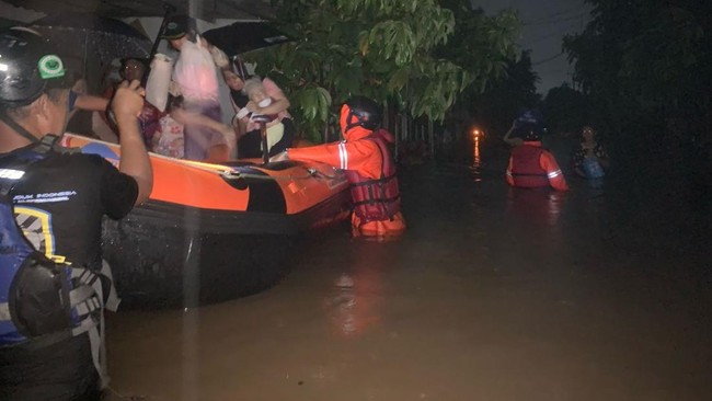 Adam mengatakan petugas BPBD sejak malam hingga pagi tadi telah melakukan penanganan dan evakuasi warga. Saat ini, genangan banjir sudah surut.