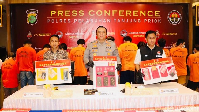 Barang bukti yang disita polisi dari 19 pelaku pengedar narkoba adalah 39.76 gram bruto senilai Rp 100 juta. Polres Pelabuhan Tanjung Priok mengklaim dapat menyelamatkan 500 orang dari bahaya narkoba dari pengungkapan kasus ini.