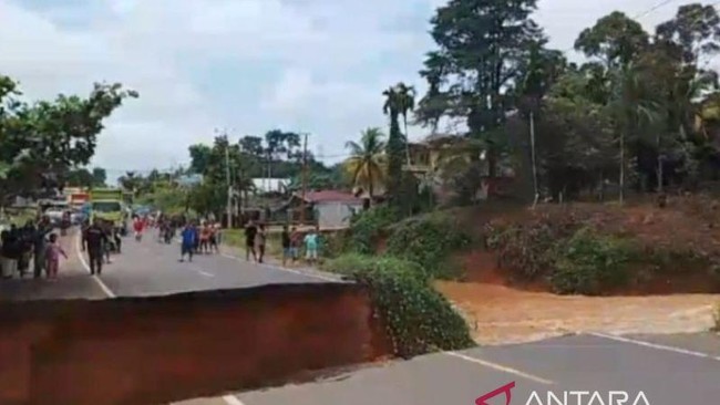 Dilansir Antara, Minggu (2/3/2025), jalan yang putus itu tepatnya berada di Simpang Ratu Balqis Desa Sirih Sekapur, Kecamatan Jujuhan, Kabupaten Bungo, Jambi.