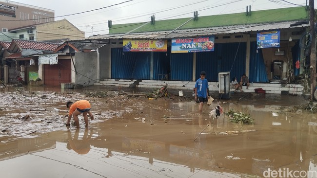Sejumlah warga ada yang berjalan-jalan dan melihat kondisi banjir di Vila Nusa Indah. Warga juga melihat kondisi Sungai Cileungsi yang meluap dan mengakibatkan banjir.