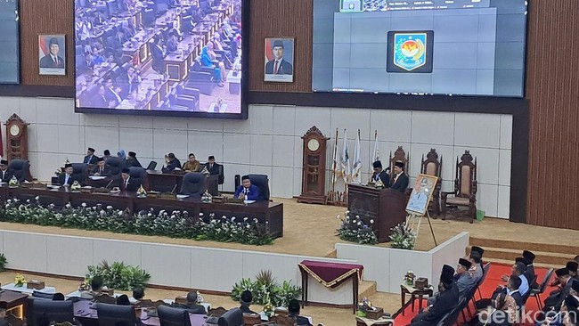 Rapat paripurna serah terima Gubernur Banten digelar pada Selasa (4/3/2025) di gedung DPRD Banten. Rapat paripurna dipimpin oleh Ketua DPRD Banten Fahmi Hakim, dan dihadiri oleh bupati serta wali kota di wilayah Provinsi Banten.
