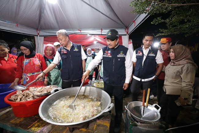 Menteri Sosial Saifullah Yusuf (Gus Ipul) bersama Wakil Menteri Sosial Agus Jabo Priyono turun langsung memastikan pelayanan makanan bagi korban banjir tetap optimal. Keduanya ikut menyiapkan makan sahur bagi para korban banjir di dapur umum Kantor Kelurahan Jatiasih, Selasa (4/3).