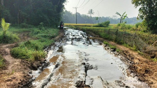 Nurasiah merasa kesal lantaran setiap hari harus melintasi jalan tersebut. Menurutnya, jalan seperti kubangan ikan.