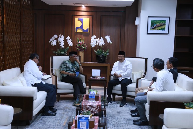 Menteri Sosial (Mensos) Saifullah Yusuf (Gus Ipul) menemui Menteri Pekerjaan Umum (PU), Dody Hanggodo di Kantor Kementerian PU, Jakarta, hari ini. Dalam pertemuan ini, keduanya membahas rencana pembangunan Sekolah Rakyat sebagai tindak lanjut atas arahan Presiden Prabowo Subianto.