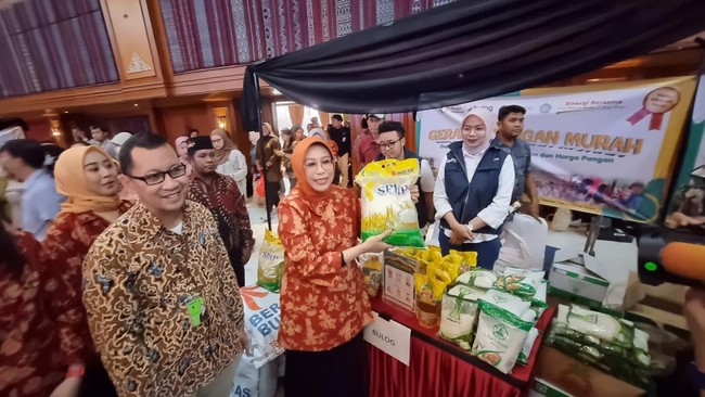"Tapi kita memberikan harga yang jauh lebih murah daripada di harga luaran. Jadi ada sembako, kemudian ada sayur-sayuran, juga ada buah-buahan. Ada juga frozen food, daging, ayam dan sebagainya ya. Jadi saya berharap ini bisa meringankan teman-teman dari golongan 1, 2, PPPK, honorer," ujar Fatma usai pembukaan bazar pangan murah itu.