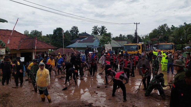 Pihak Dinas PUPR Provinsi Banten sendiri telah menurunkan alat berat ke lokasi. Pembersihan sisa material yang tidak bisa diangkat oleh alat berat dilakukan secara gotong royong bersama masyarakat.