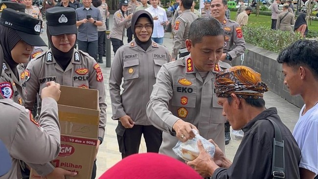 Acara pembagian takjil gratis ini dilaksanakan di Alun-alun Kota Bogor, Jawa Barat, Jumat (7/3/2025) sore. Kombes Eko dan jajaran membagikan 200 paket takjil kepada warga yang sedang ngabuburit di lokasi.