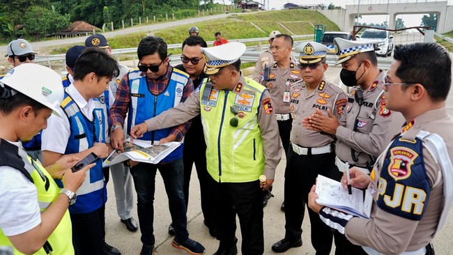 Irjen Agus melakukan peninjauan didampingi Kabag Ops Korlantas Polri Kombes Aries Syahbudin, jajaran Ditlantas Polda Metro Jaya dan Polda Jawa Barat, serta dari Jasa Marga dan Jasa Raharja.