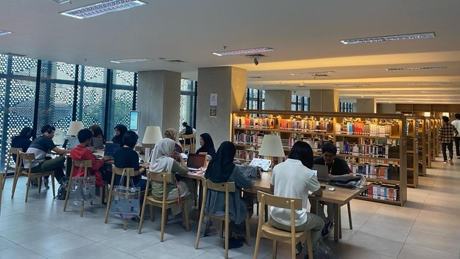 "Kalau aku sih emang udah sering ke sini minimal sebulan sekali lah, ke sini untuk pinjem buku dan nggak jauh dari kosan jadi kalau bingung mau ke mana seringnya ke sini," kata salah satu pekerja, Arin (25), saat ditemui di lokasi, Minggu (9/3/2025).