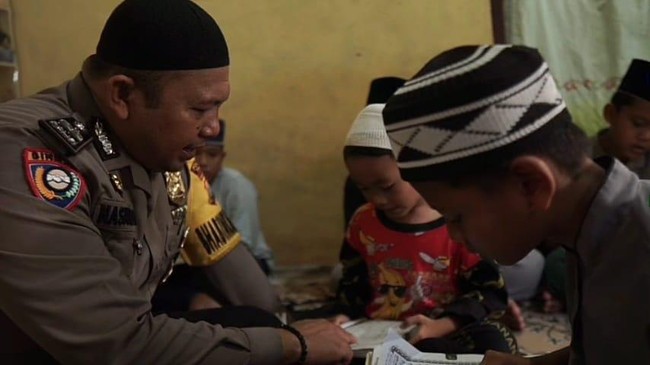 "Di samping ngajar ngaji, saya ngasih pencerahan kepada anak-anak tentang jangan berbuat jahat, jangan melawan orang tua, di situlah orang tua itu bersyukur mereka. Yang dulunya anak-anak kecil takut melihat baj dinas Polri, saat ini mereka sudah menjadi sahabat nggak ada takutnya lagi," tutur dia.