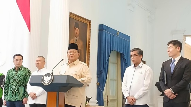 Hal itu disampaikan Prabowo di Istana Merdeka, Jakarta, Senin (10/3/2025). Prabowo didampingi Menaker Yassierli, Mensesneg Prasetyo Hadi, MenPAN-RB Rini Widyantini, hingga Menhub Dudy Purwaghandi dalam pengumuman ini.