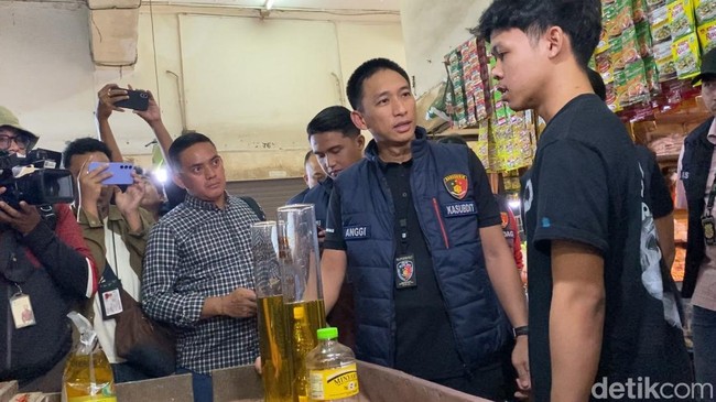 Satgas Pangan Polda Metro Jaya melakukan sidak Minyakita di Pasar Kemayoran, Jakarta Pusat (Jakpus). Hasilnya, polisi menemukan Minyakita berukuran 1 liter ternyata hanya berisikan 800 mililiter.