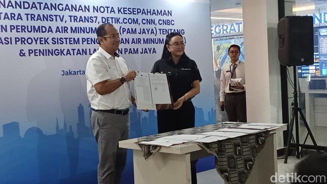 Kerja sama itu terwujud dalam penandatanganan nota kesepahaman atau memorandum of understanding (MoU) tentang publikasi dan sosialisasi Proyek Sistem Penyediaan Air Minum (SPAM) yang berlangsung di kantor pusat PAM JAYA, Rabu (12/3/2025). Direktur Utama PAM JAYA Arief Nasrudin hadir langsung, sedangkan dari Transmedia hadir CEO Transmedia yang menaungi Trans TV dan Trans7, yaitu Atiek Nur Wahyudi, dan CEO Detiknetwork Abdul Aziz.