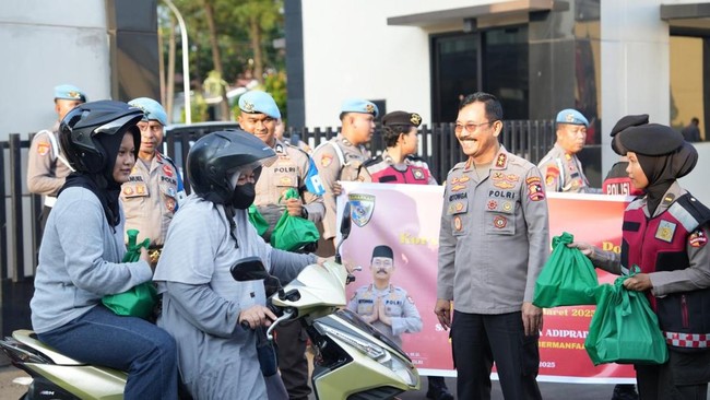 "Berbagi takjil untuk masyarakat umum yang melintas di depan Mako Korsabhara, Kelapa Dua, Depok, Jawa Barat (Jabar), dalam rangka peringatan HUT ke-73 Korsabhara Baharkam Polri," kata Kakor Sabhara Baharkam Polri Irjen Mulya Hasudungan Ritonga dalam keterangan tertulis, Kamis (13/3/2025).