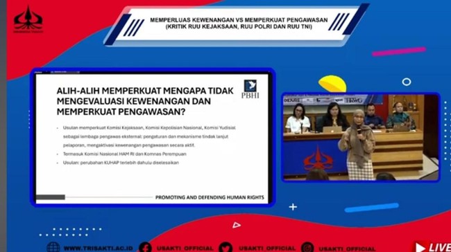 "Seharusnya ada banyak hal yang harus dievaluasi terlebih dahulu sebelum melanjutkan pembahasan revisi UU ini karena memang berbahaya sekali apalagi dalam konteks HAM dan demokrasi," kata Gina dalam diskusi yang bertajuk 'Memperluas Kewenangan Vs Memperkuat Pengawasan: Kritik RUU Kejaksaan, Polri dan TNI' dilihat di kanal YouTube Universitas Trisakti, Minggu (16/3/2025).